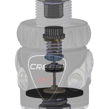 La hipercompensación del mecanismo garantiza un ligero incremento de la presión intermedia a medida que desciende la presión de la botella. El regulador suministra por lo tanto su máximo nivel de prestaciones en la fase final de la inmersión, sin duda la más crítica.